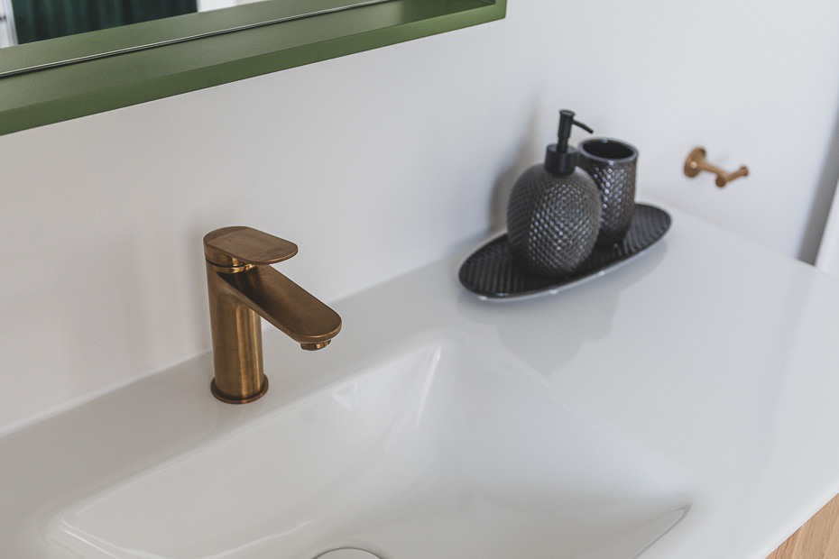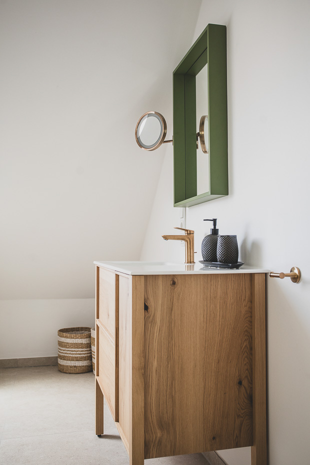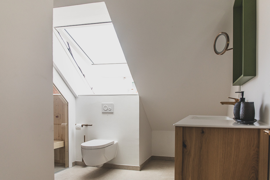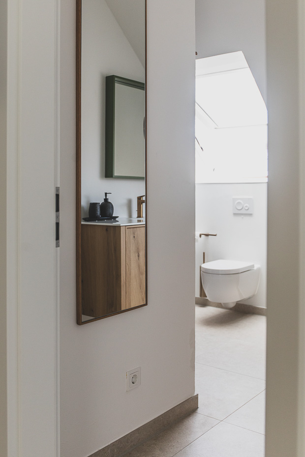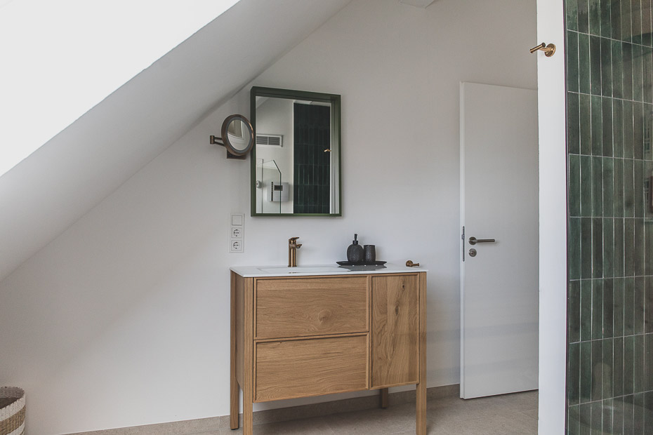 - Badezimmer mit Dusche, Waschtisch und WC