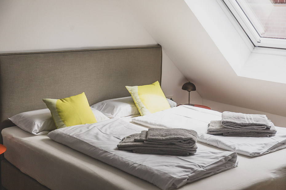Wäschepaket bestehend aus Bettwäsche mit bezogenen Betten und Handtüchern für 20,99 Euro je Gast