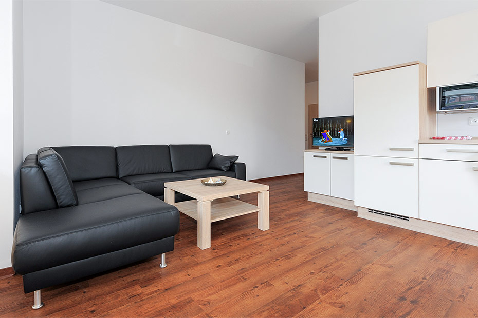 - Wohnraum mit integrierter Küche