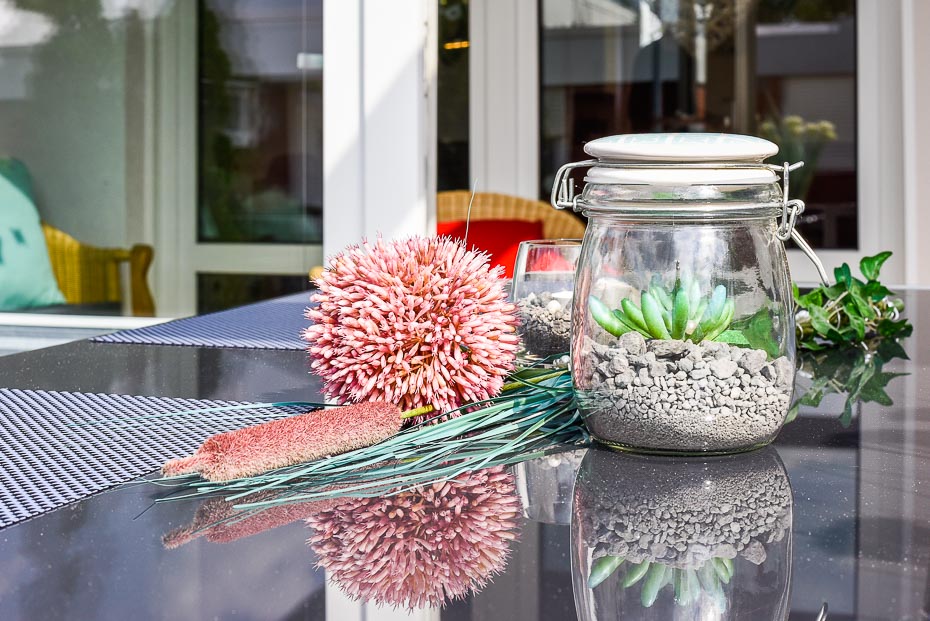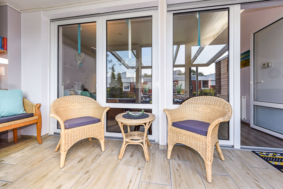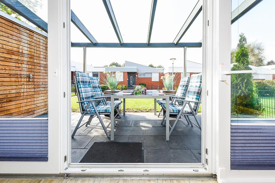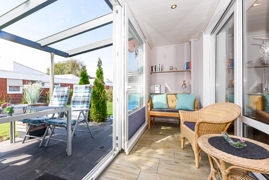 - Terrasse (glasüberdacht mit Gartenmöbeln)