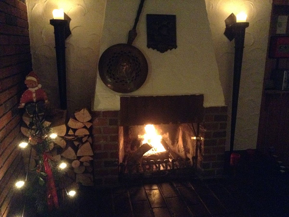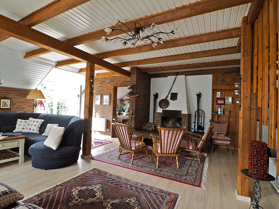 - Wohnzimmer mit Essgruppe und Kamin