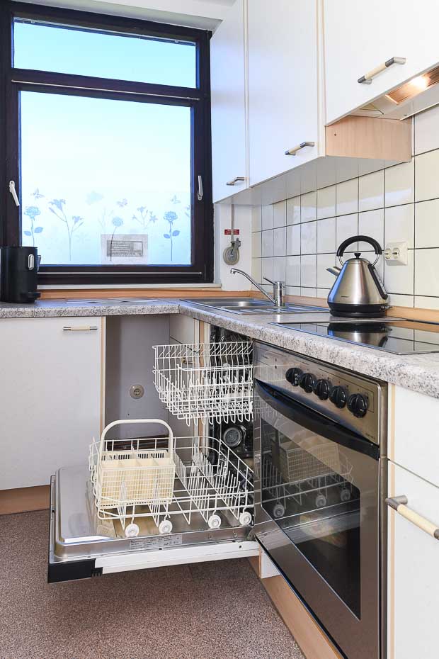 - Herd: Vierplattenherd (Ceran-Kochfelder) und Umluft-Backofen