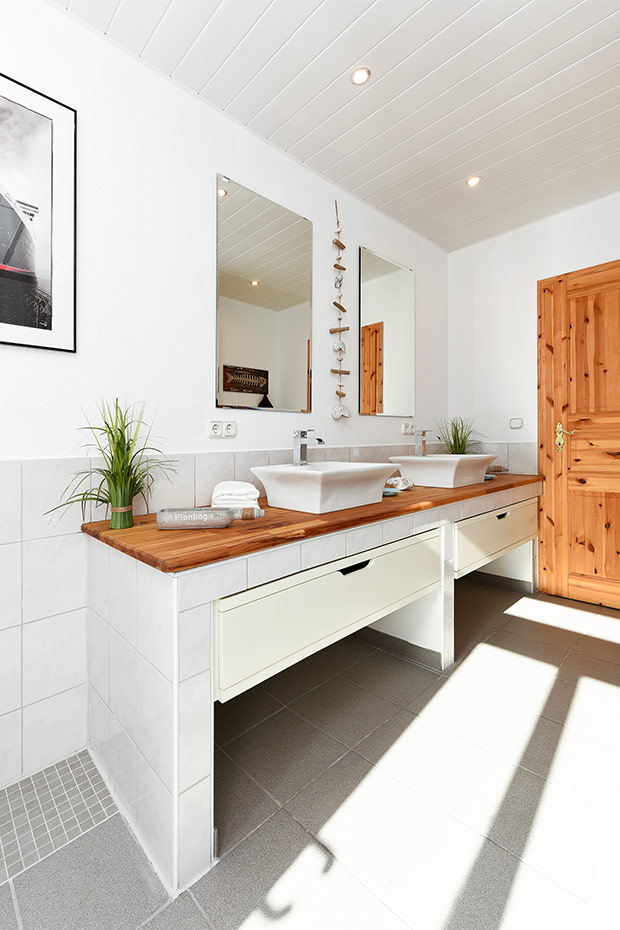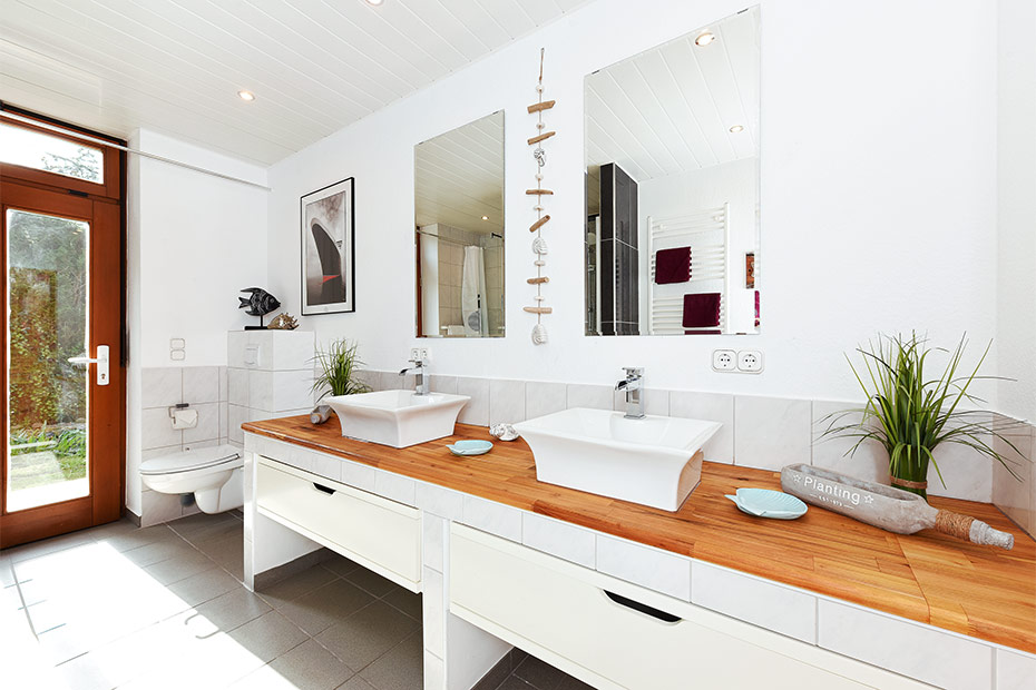 - zwei Holzterrassen (eine mit Frühstücks- und eine mit Abendsonne)