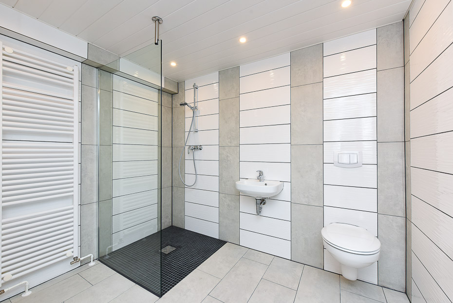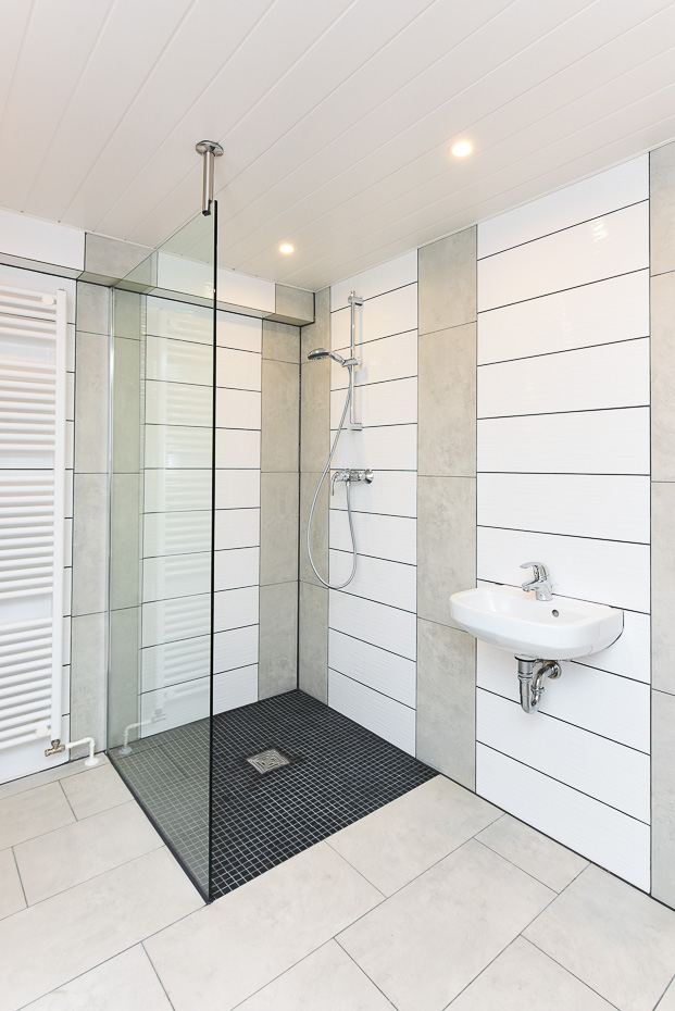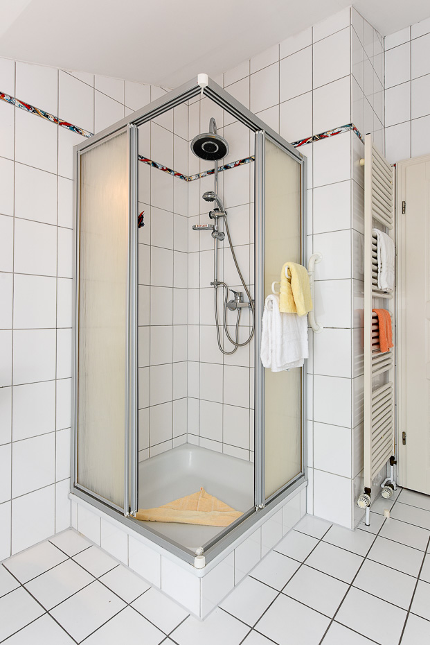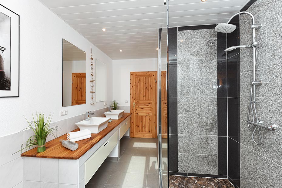 - zweites Badezimmer mit Dusche, Waschtisch, Waschmaschine und Wäschetrockner
