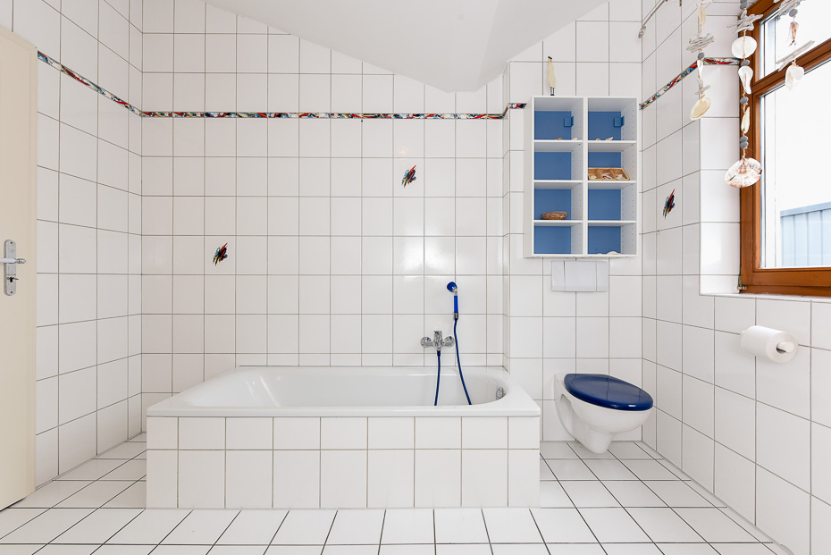 - Badezimmer mit Badewanne, Dusche, Waschtisch und WC