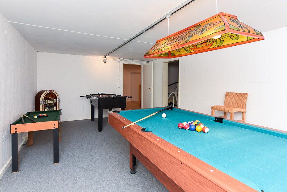 - zwei große Kellerräume mit Kicker/Billiard/Tischtennis