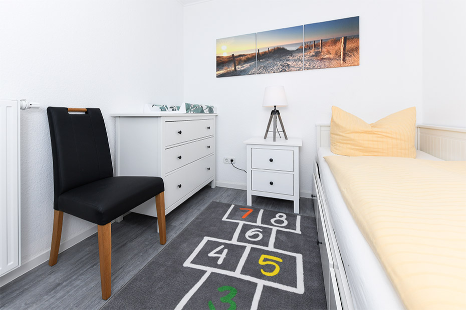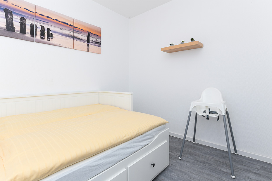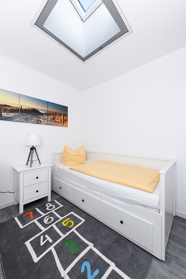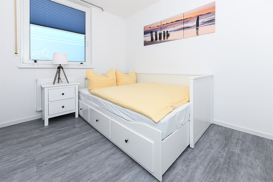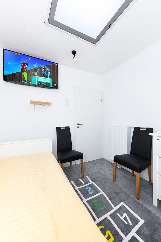 - Schlafzimmer 3: ausziehbares Einzelbett mit zwei Matratzen und TV