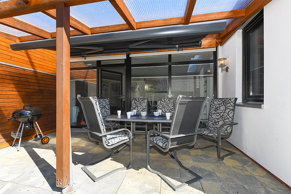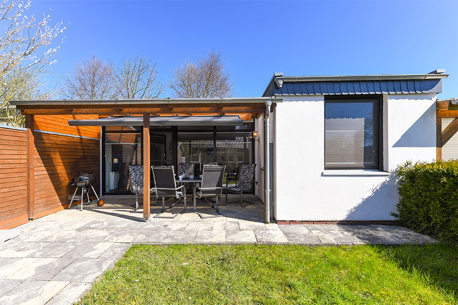 - Terrasse mit Überdachung, Markise und Seitenmarkise