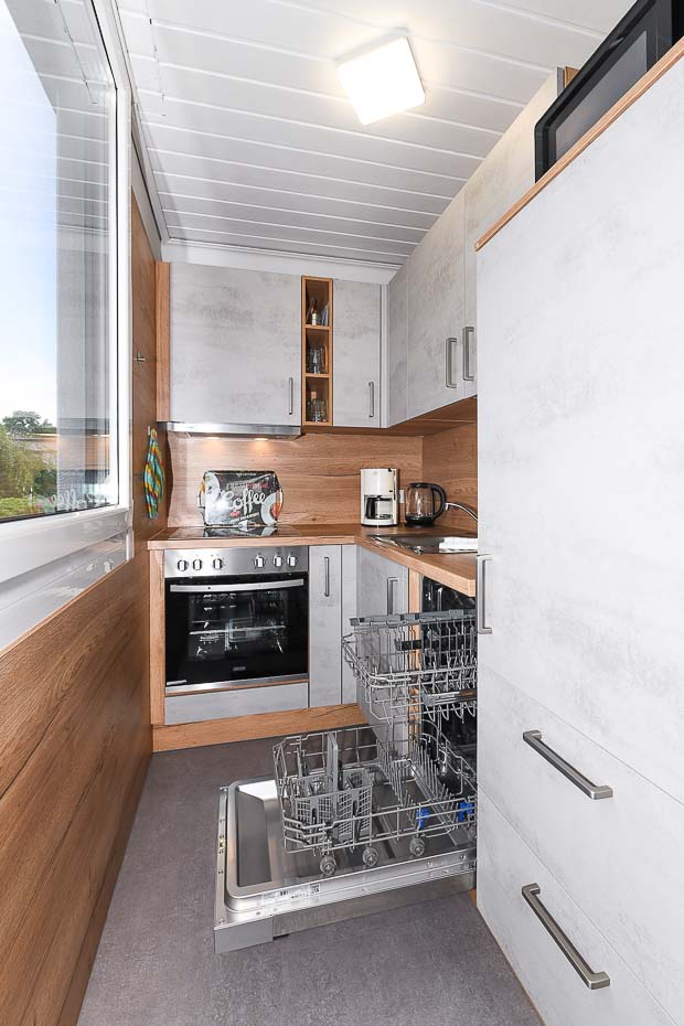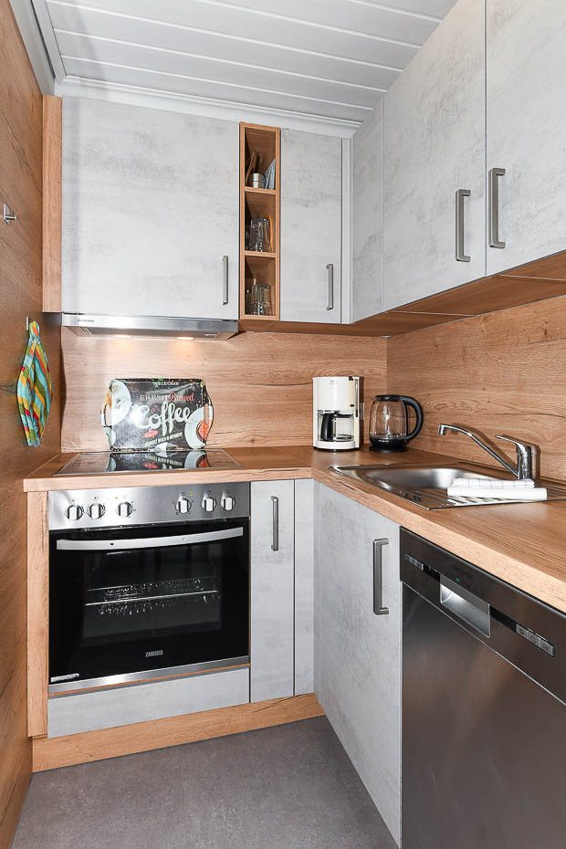 - Herd: Vierplattenherd (Ceran-Kochfelder) und Backofen