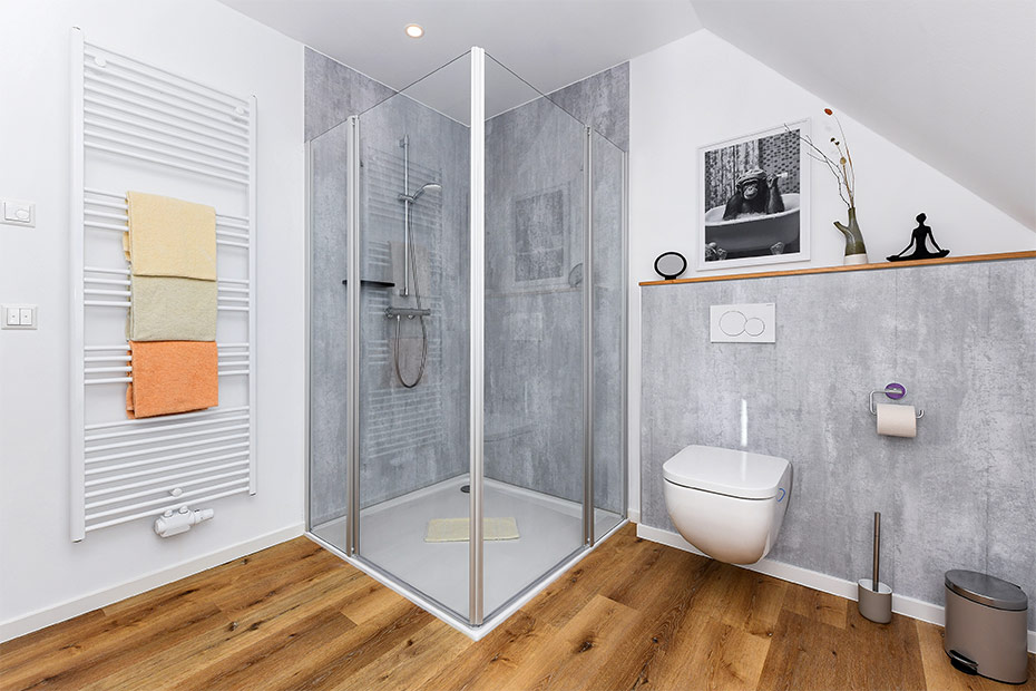 - zweites Badezimmer mit Dusche, Waschtisch und WC