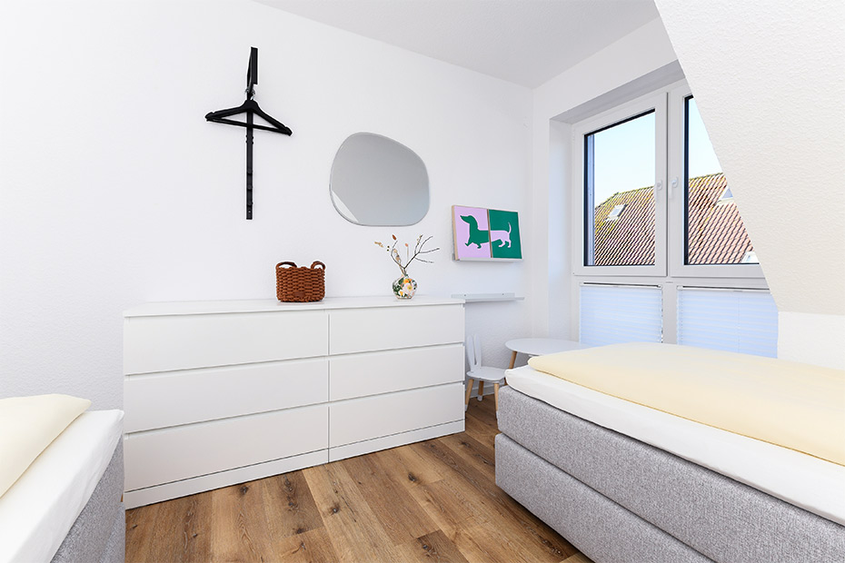 - Verdunkelung: alle Schlafzimmer sind verdunkelbar und haben kpl. Plissee-Sichtschutz