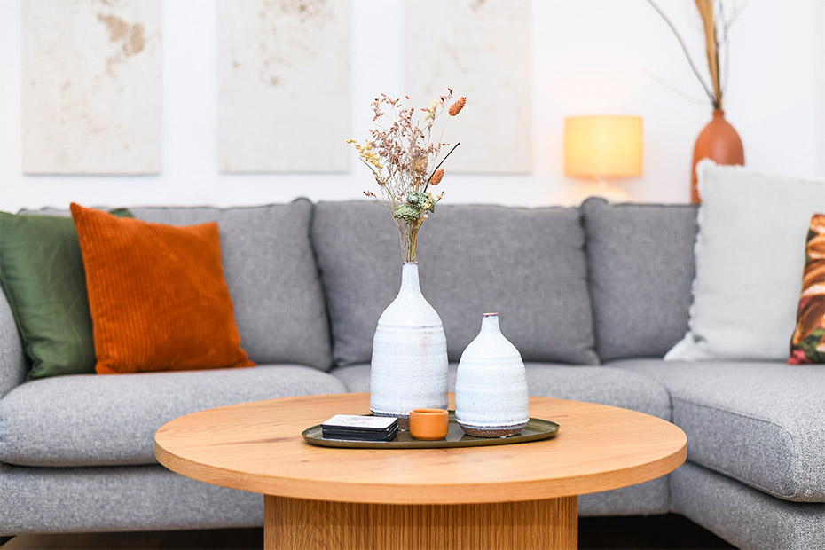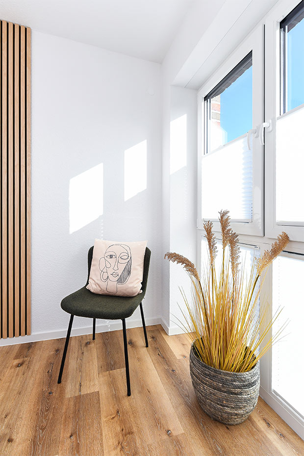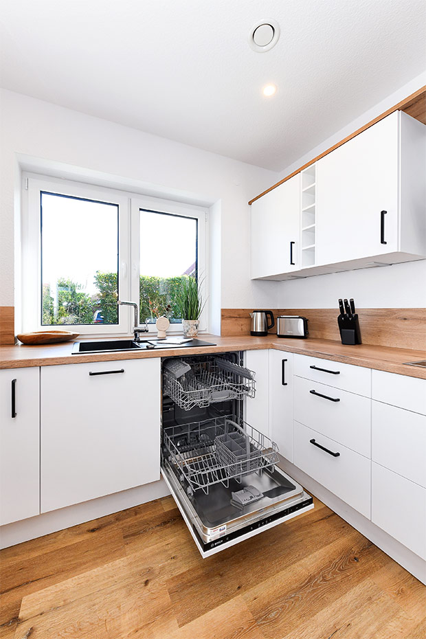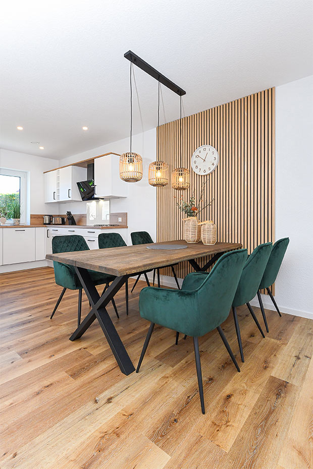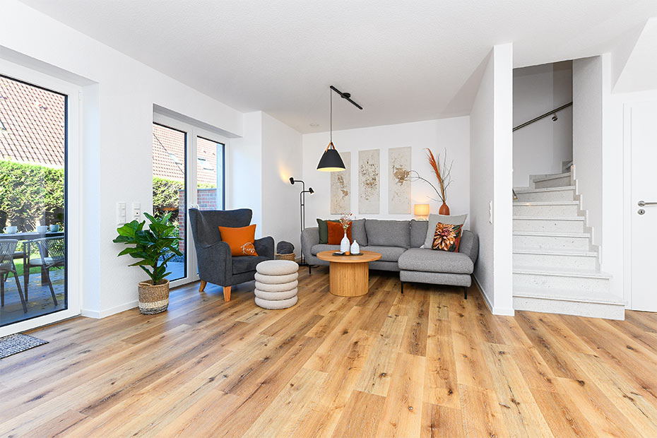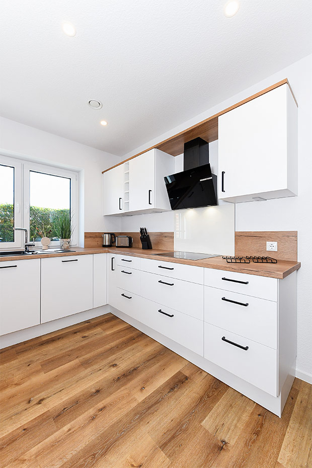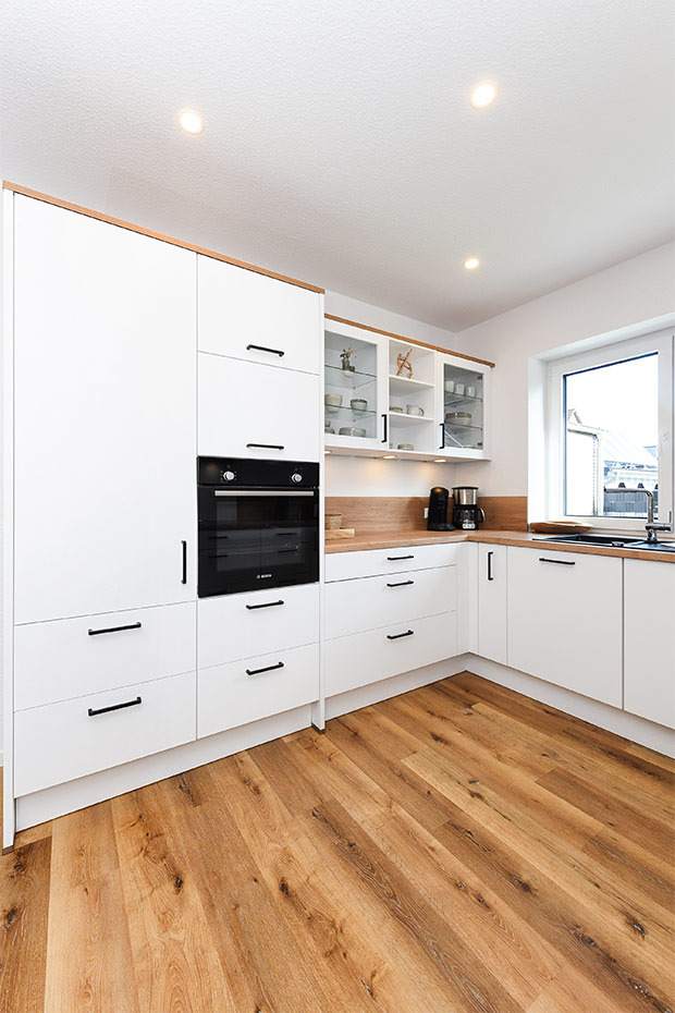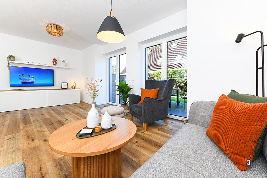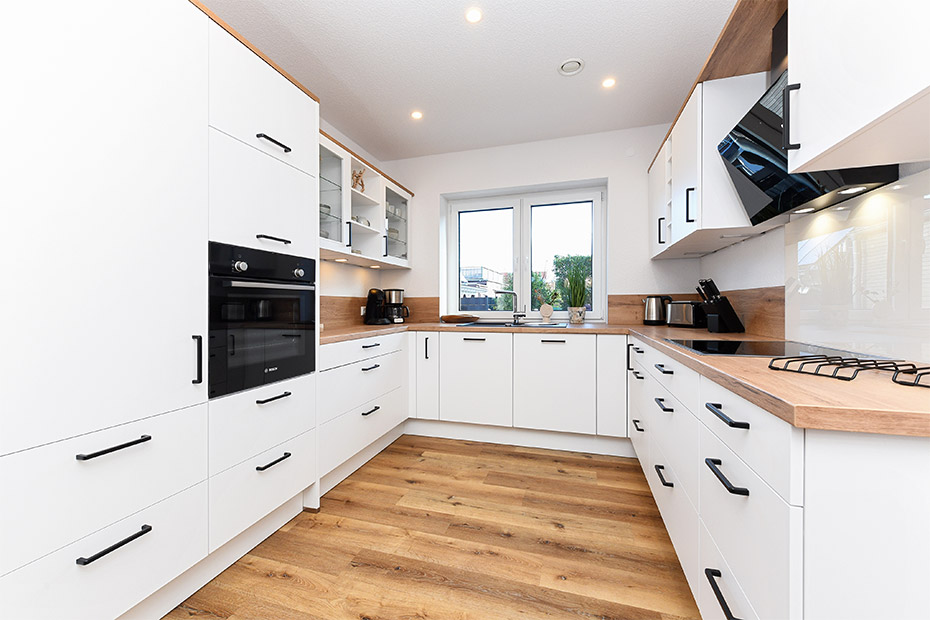 - Wohnraum mit separatem Küchenteil bei offener Raumgestaltung