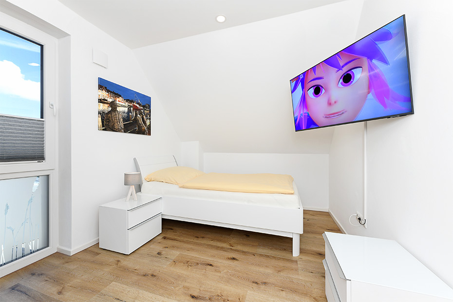 Das Bett im zweiten Schlafzimmer ist 2,00 Meter lang und 1,00 m breit