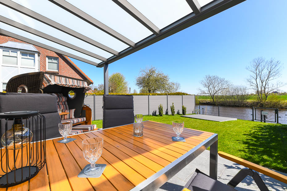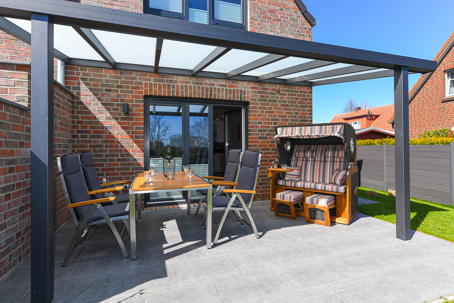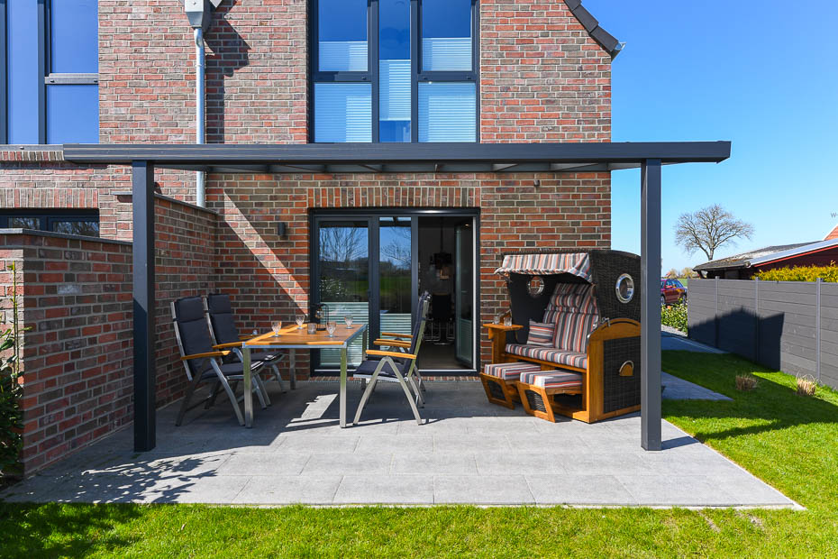 - Terrasse mit Überdachung und Strandkorb