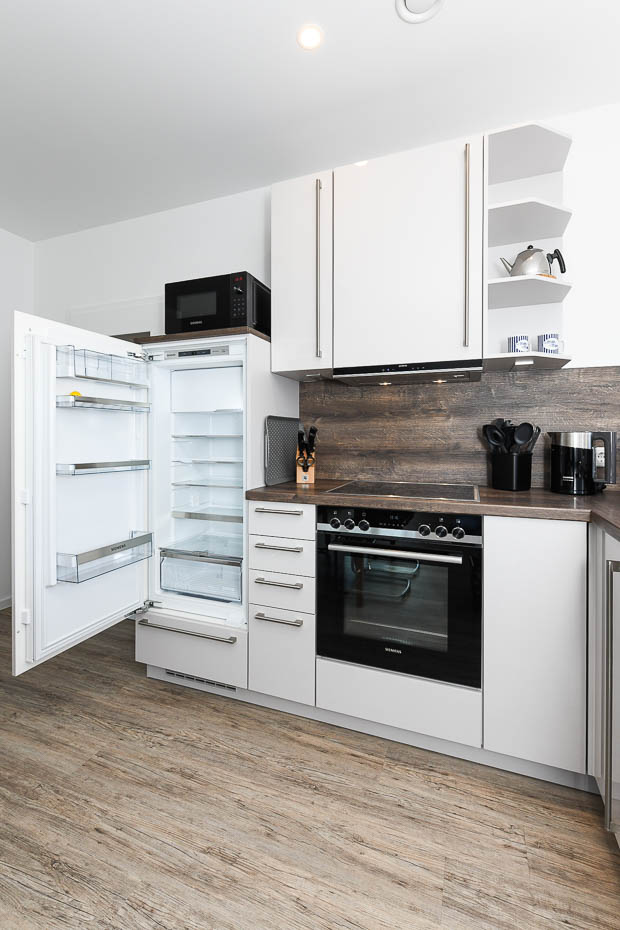 - Herd: Vierplattenherd (Ceran-Kochfelder) und Backofen