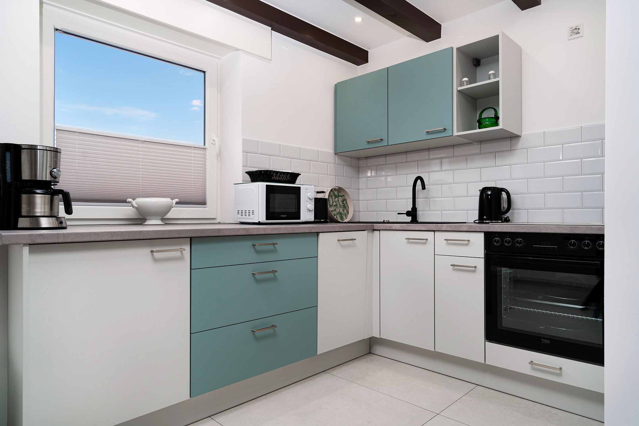 - Herd: Vierplattenherd (Ceran-Kochfelder) und Backofen