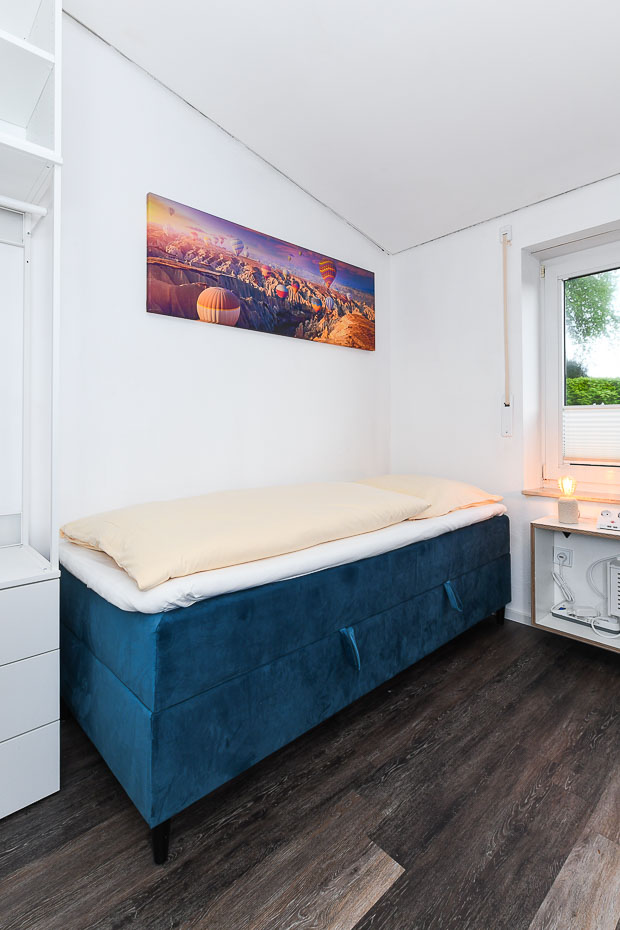 - Betten: durchgehende 180 cm Matratze im Elternschlafzimmer