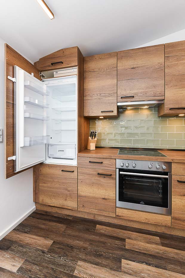 - Herd: Vierplattenherd (Ceran-Kochfelder) und Backofen