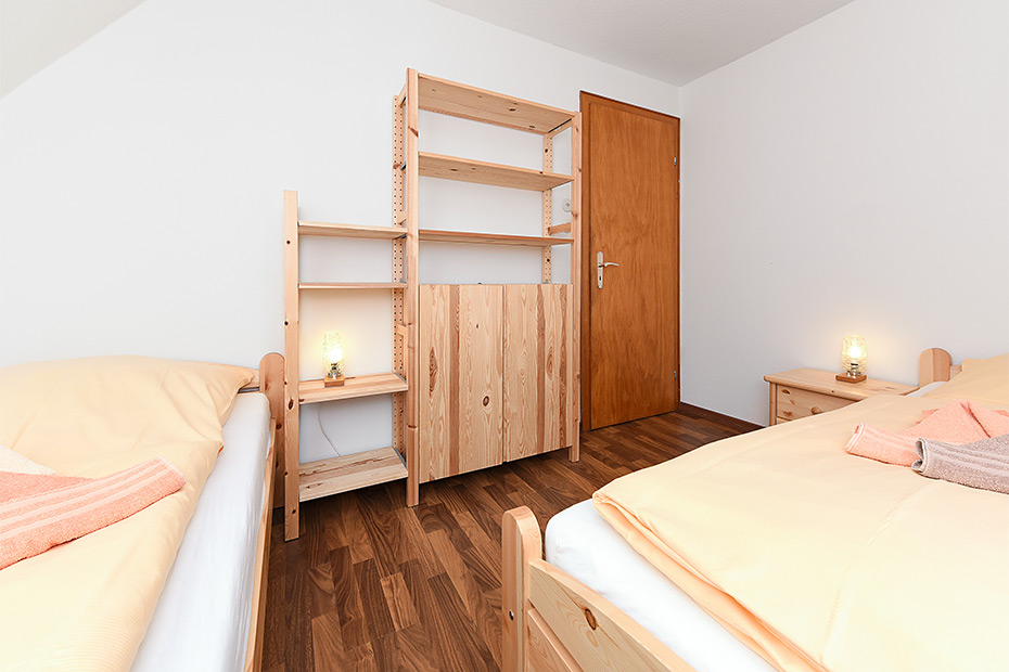 - Verdunkelung: Verdunklungsrollos in den Schlafräumen