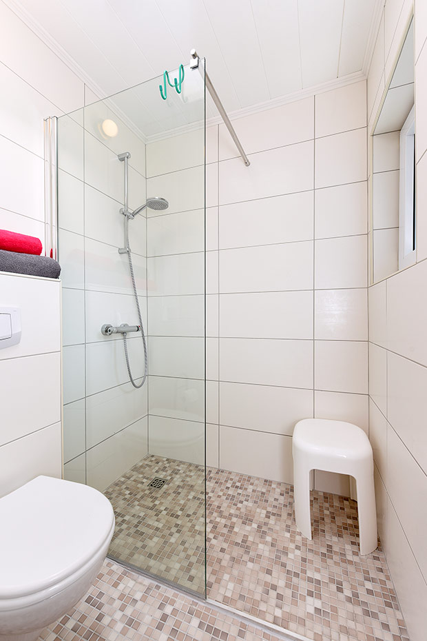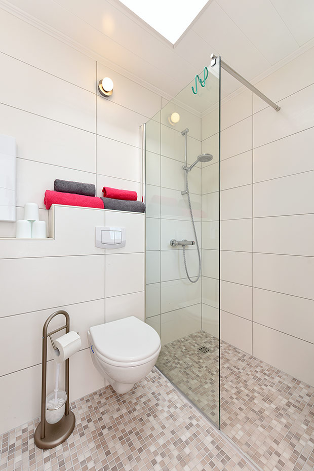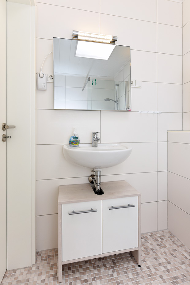 - Badezimmer: ausgestattet mit bodentiefer Dusche