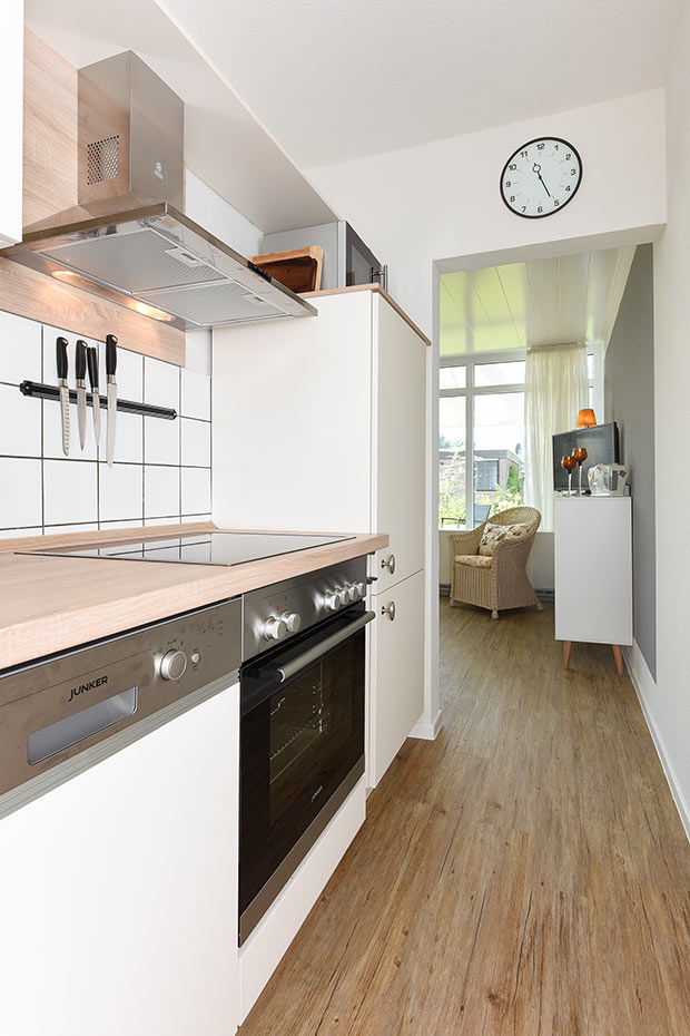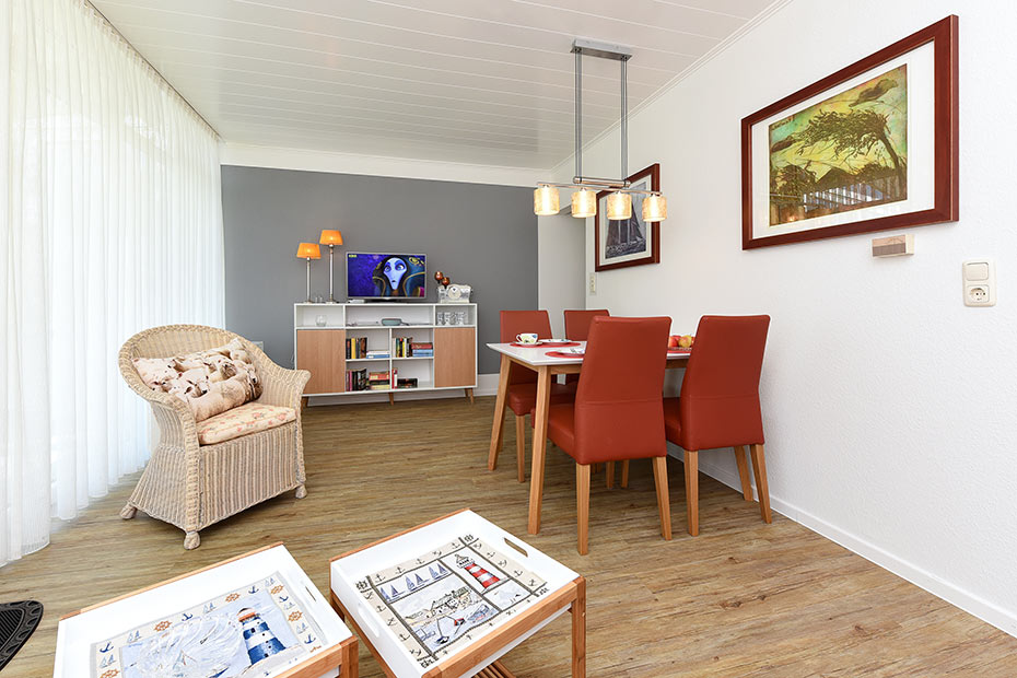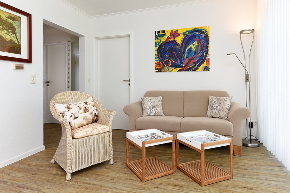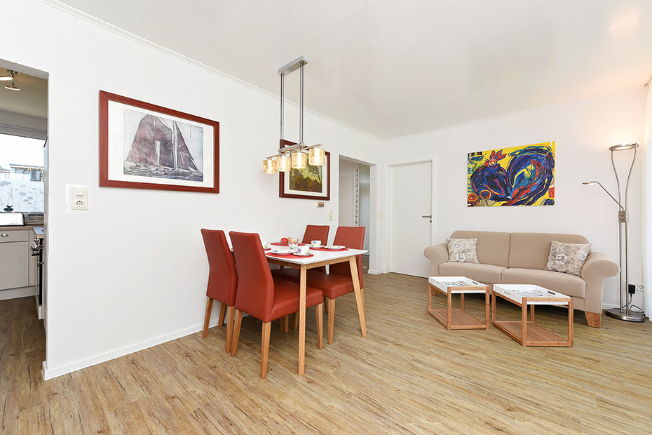 - Wohnzimmer mit räumlich abgeteiltem Küchenbereich
