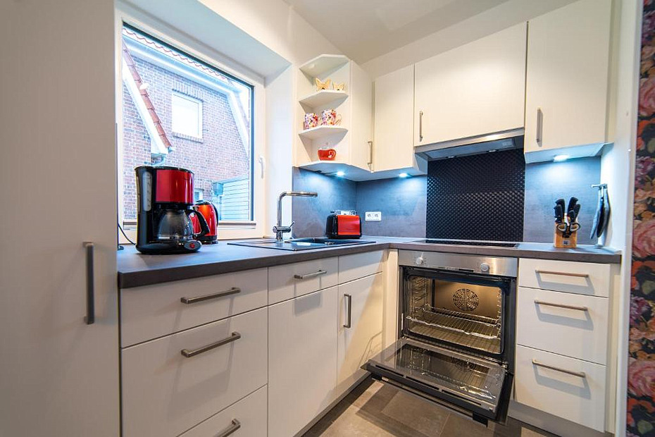 - Herd: Vierplattenherd (Ceran-Kochfelder) und Backofen