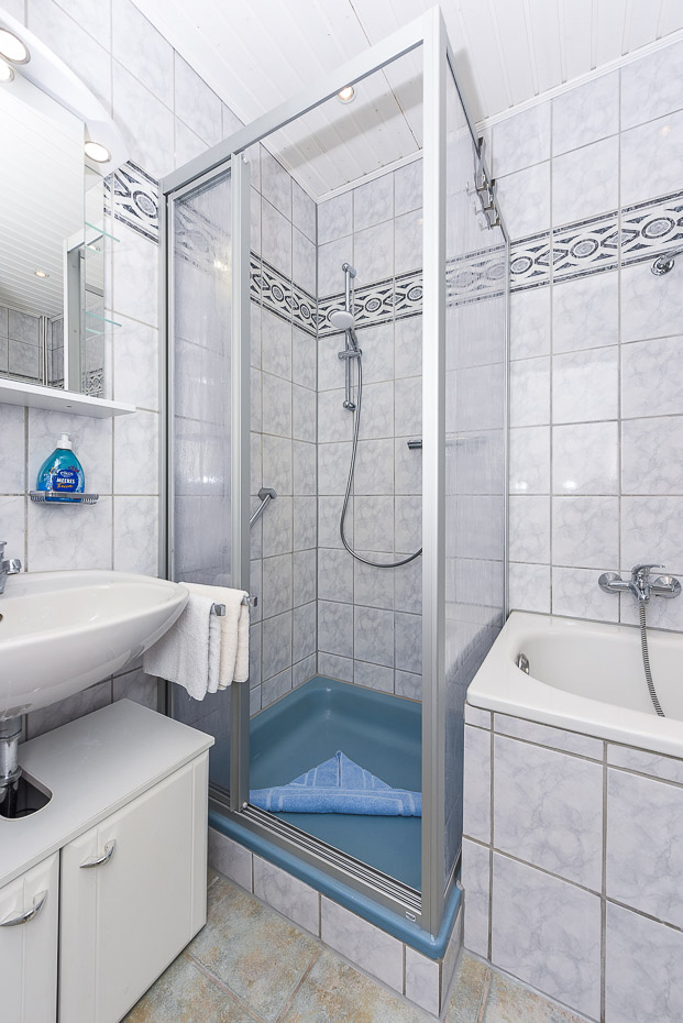 - Badezimmer mit Badewanne, Dusche und Waschtisch