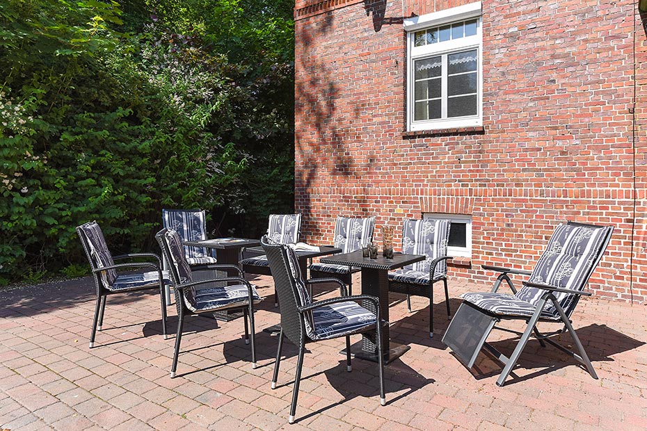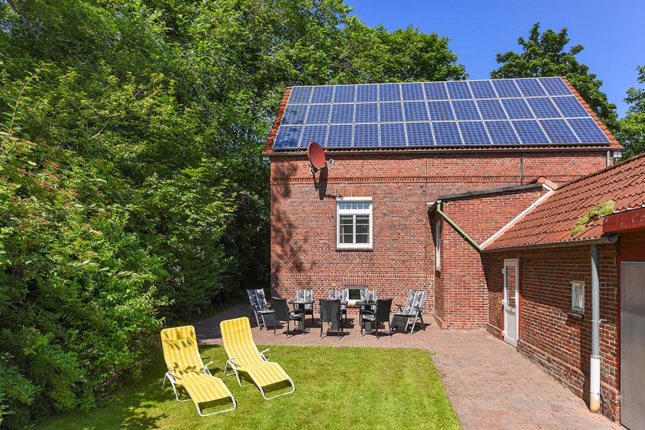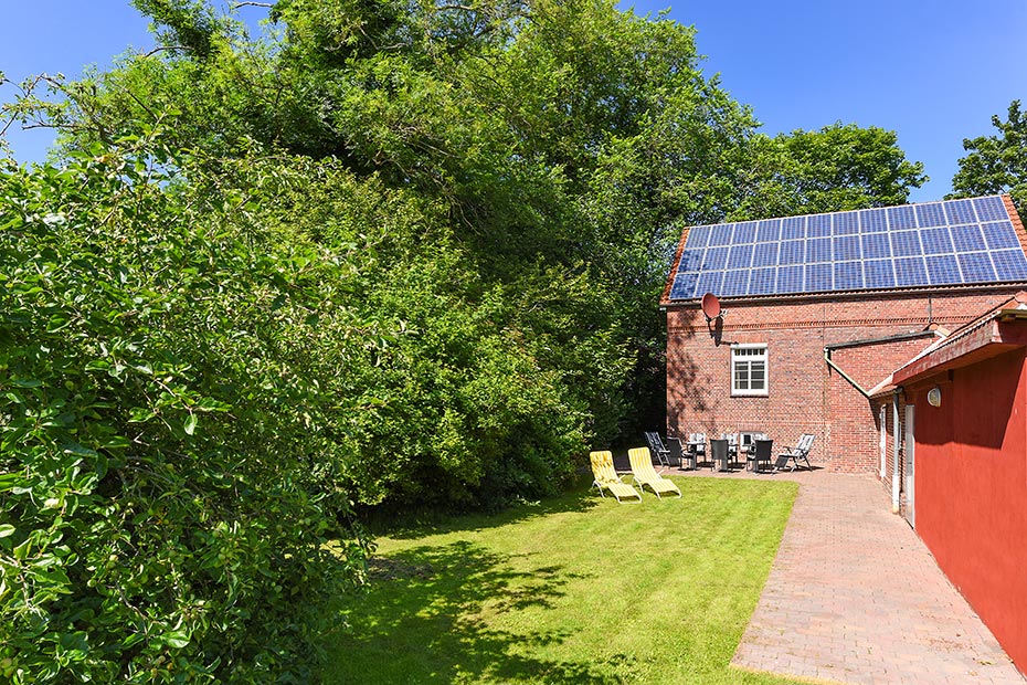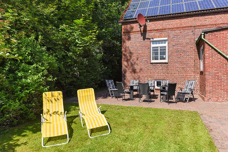 - Terrasse (im Garten, geschützt im Windschatten des Hauses, befindet sich eine sehr große Terrasse, für die Gartenmöbel zur Verfügung stehen)