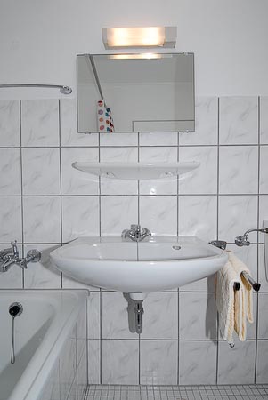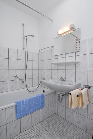 - Badezimmer mit Badewanne (mit Dusche), Waschtisch und WC