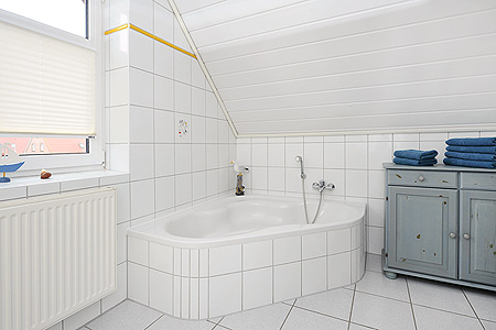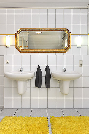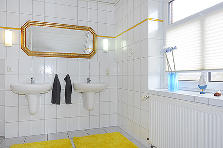 - zweites Badezimmer mit Doppel-Waschtisch, Dusche, Badewanne und WC