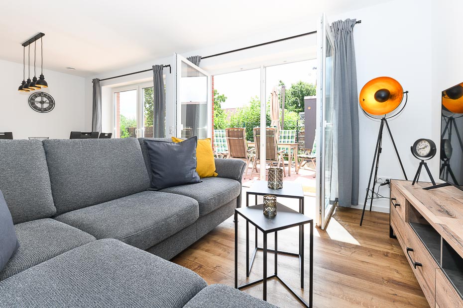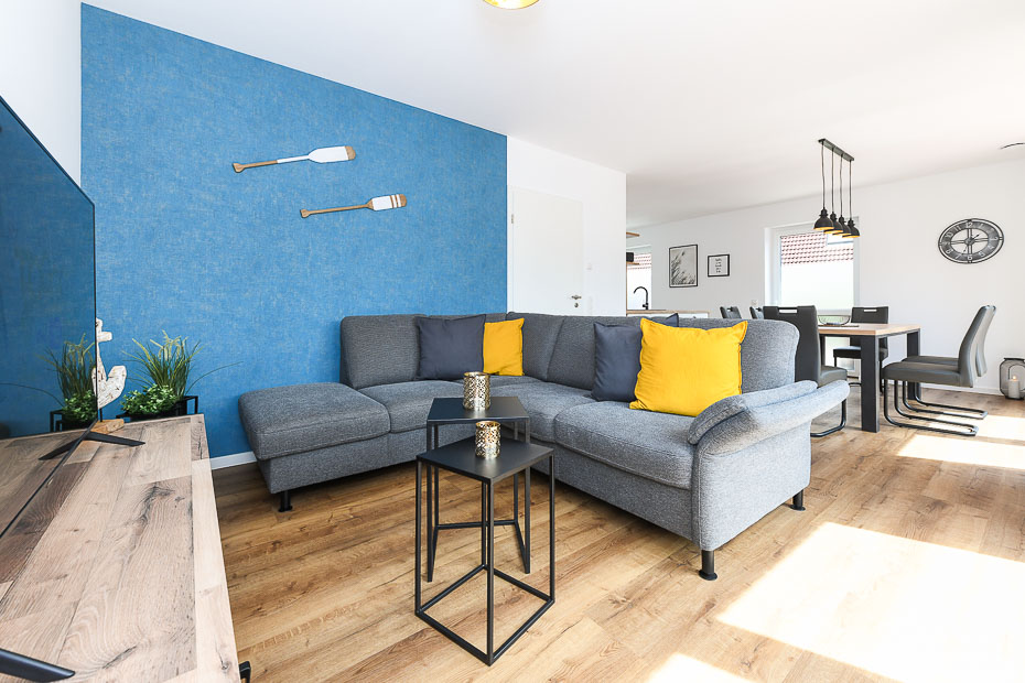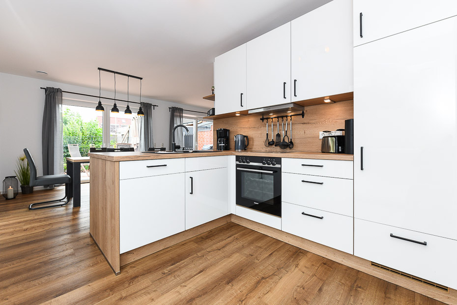 - Wohnraum mit separatem Küchenteil bei offener Raumgestaltung