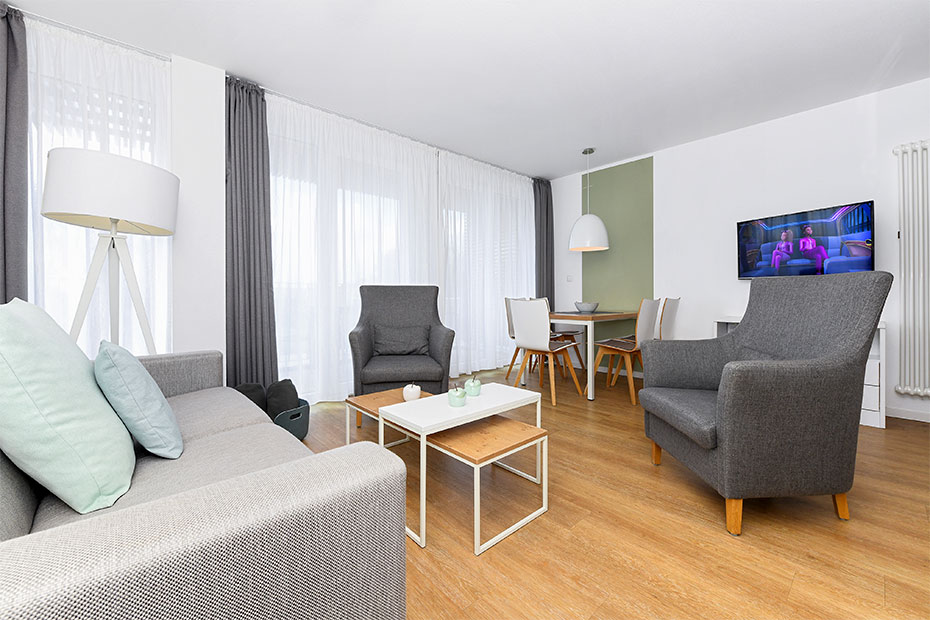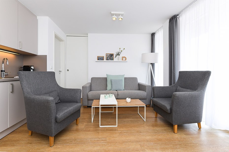 - Wohnzimmer mit integrierter Küche