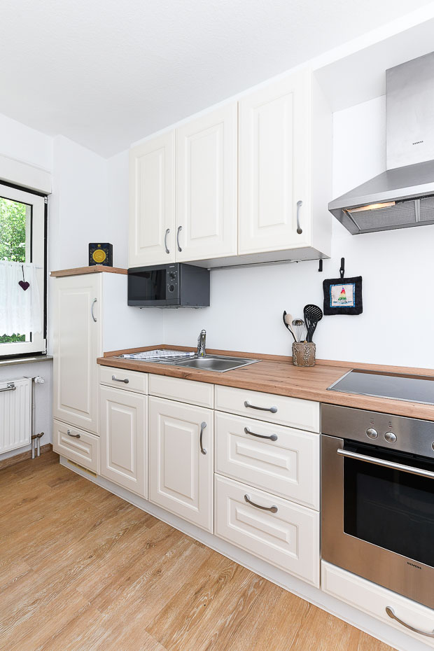 - Herd: Vierplattenherd (Ceran-Kochfelder) und Backofen