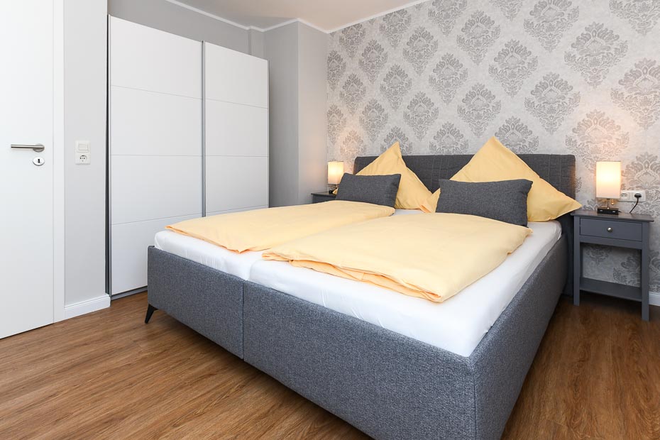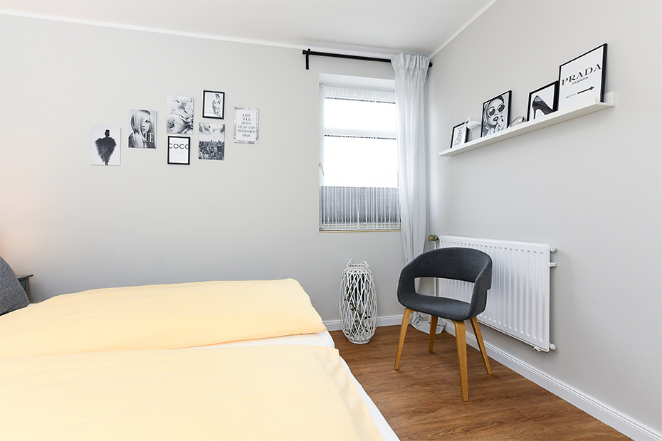 - Verdunkelung: Verdunklungsgardinen in den Schlafräumen