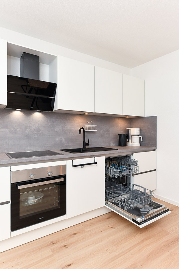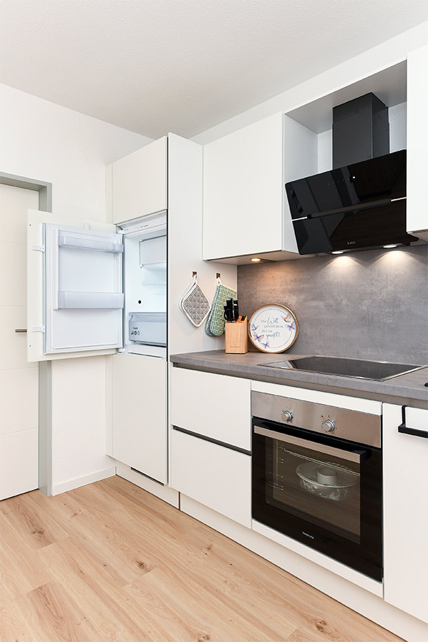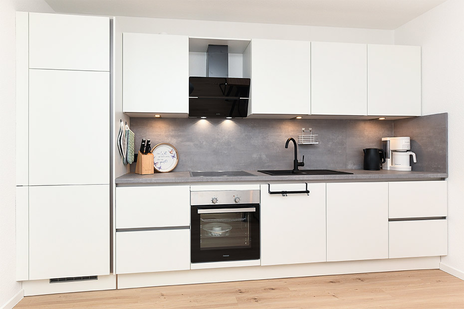 - Herd: Vierplattenherd (Ceran-Kochfelder) und Backofen