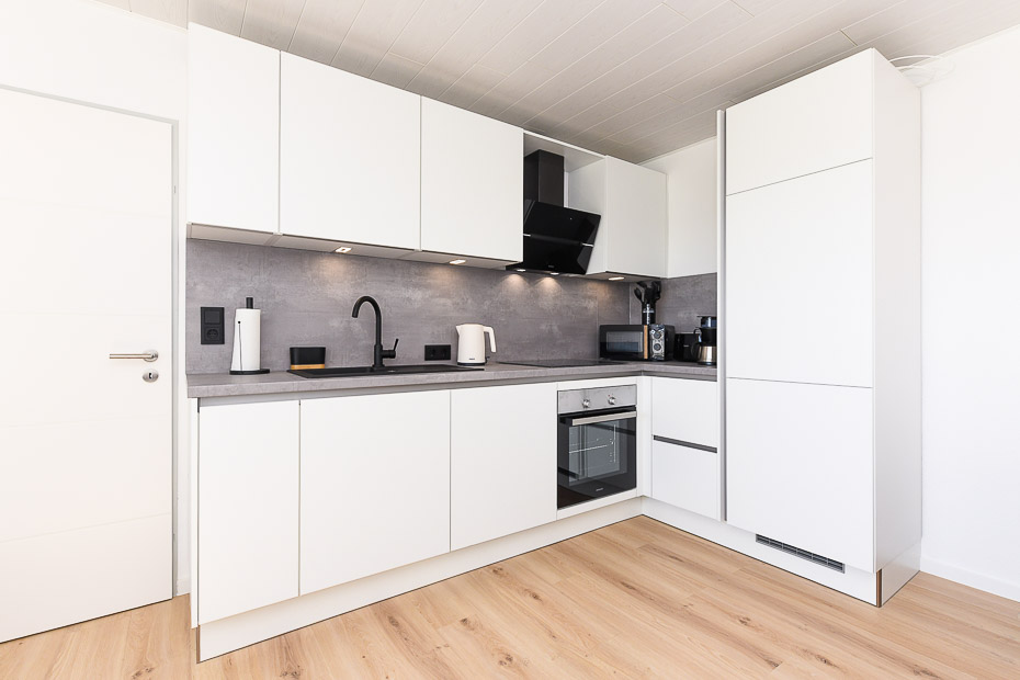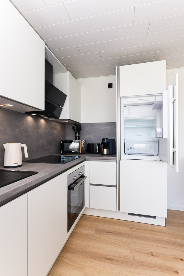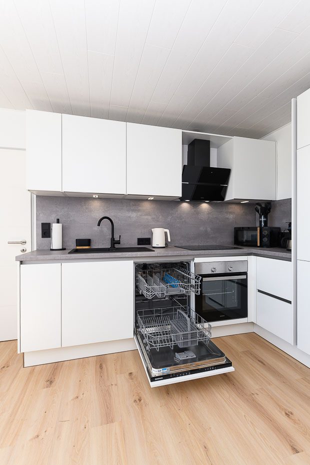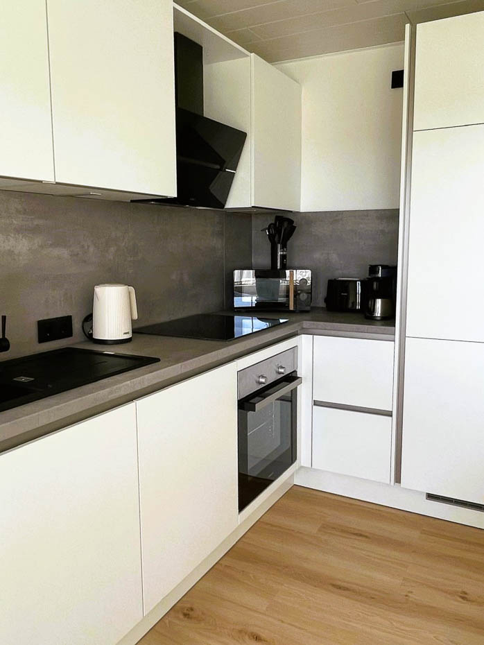 - Herd: Vierplattenherd (Ceran-Kochfelder) und Backofen