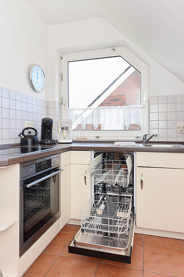 - Herd: Vierplattenherd (Induktions-Kochfelder) und Backofen