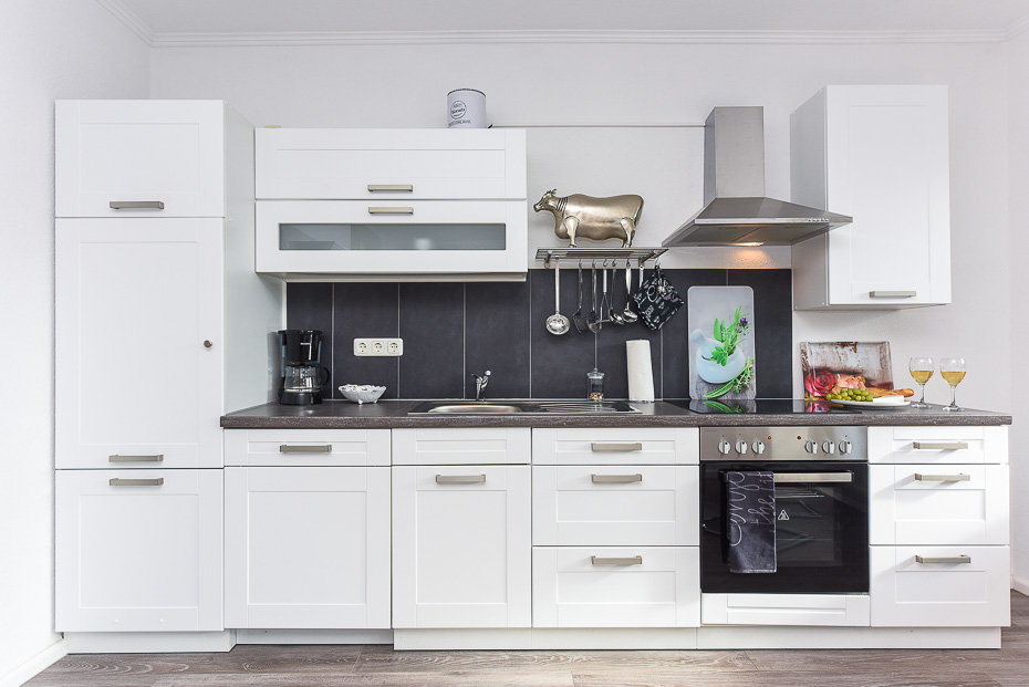 - Herd: Vierplattenherd (Ceran-Kochfelder) und Backofen