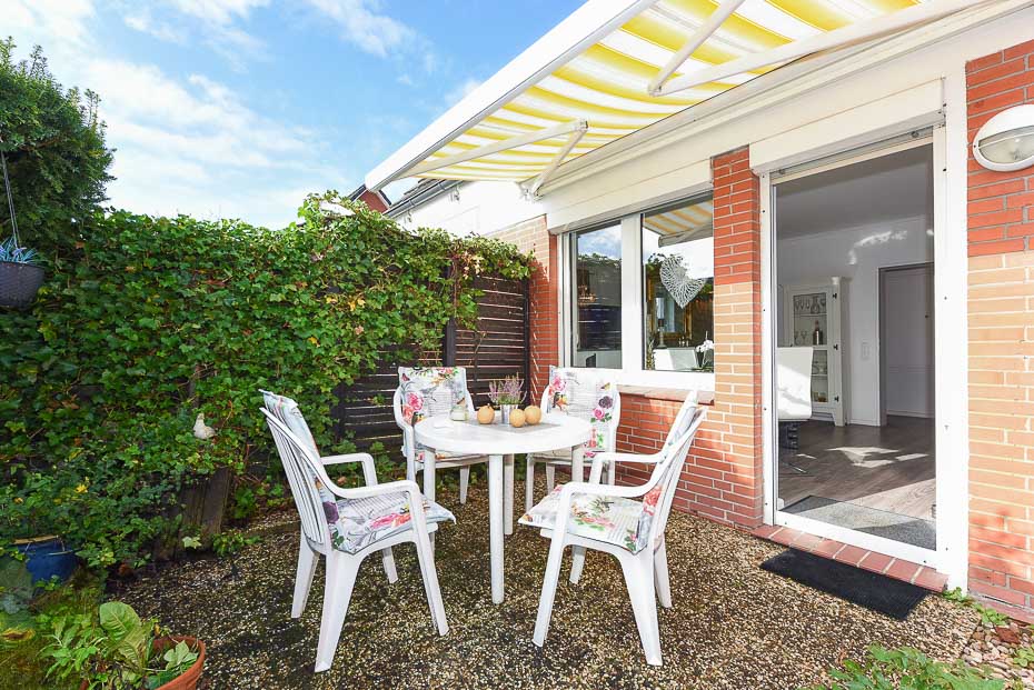 - Terrasse (mit Gartenmöbel, die Wohnung Lale verfügt über eine Markise)
