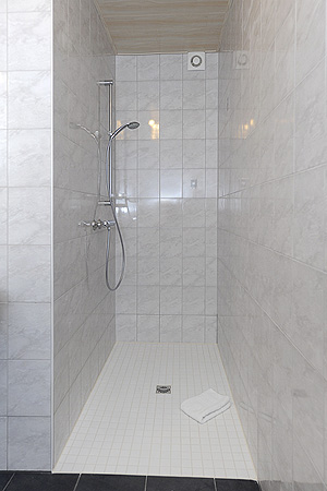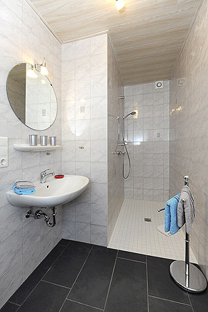 - Badezimmer: barrierefreie Dusche in der Wohnung „Ebbe“