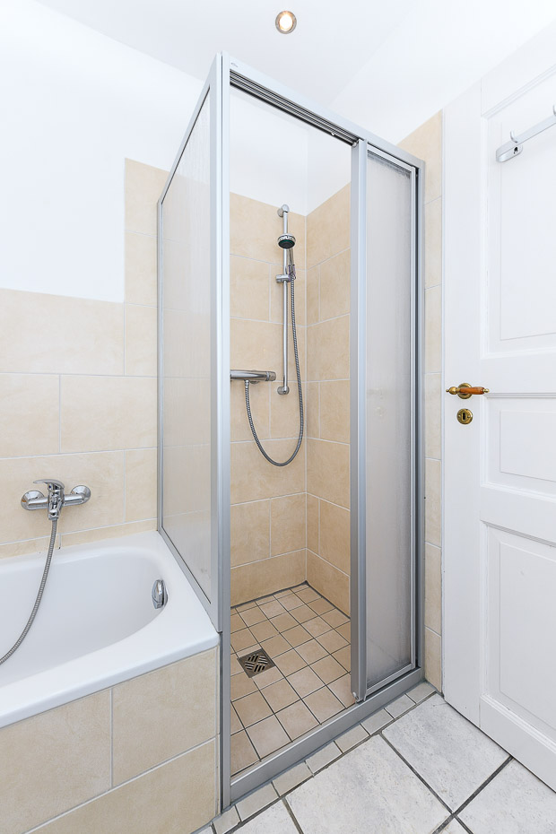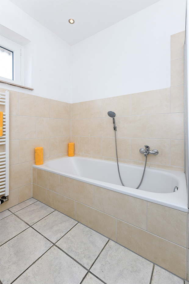 - Badezimmer mit Badewanne, Dusche, Waschtisch und WC