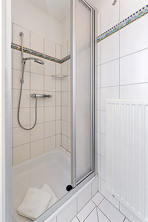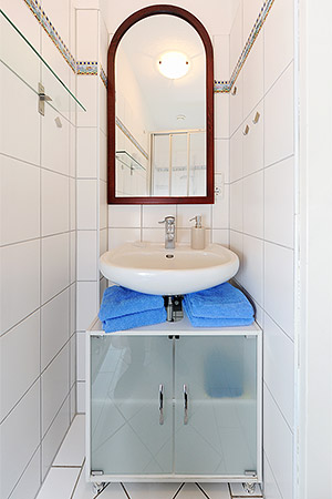 - Badezimmer mit Dusche und Waschtisch