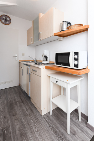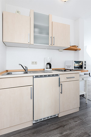 - Wohnraum mit integrierter Küche