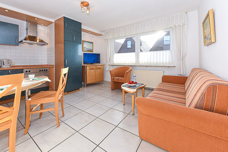 - Wohnraum mit integrierter Küche