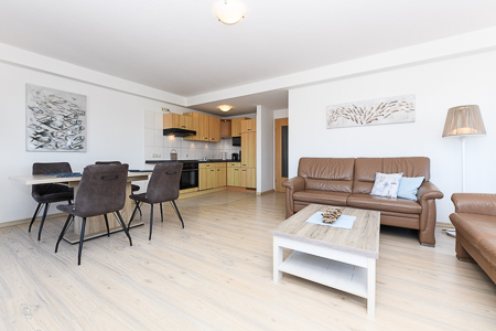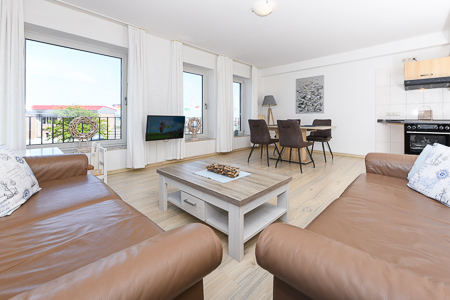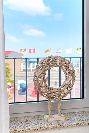 Von der Wohnung „Backbord“ aus haben Sie einen herrlichen Blick auf den Hafen, die Nordsee und das Nordseeheilbad Bensersiel.