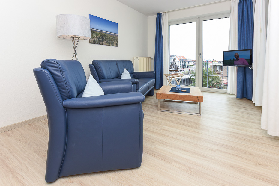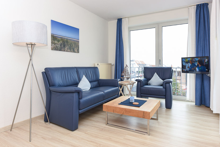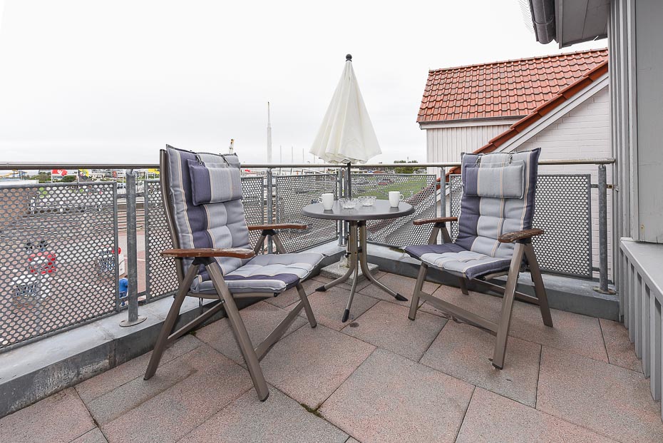 Die Wohnung „Luv“ verfügt über einen Balkon Richtung Westen mit Blick auf den Hafen und die Nordsee.