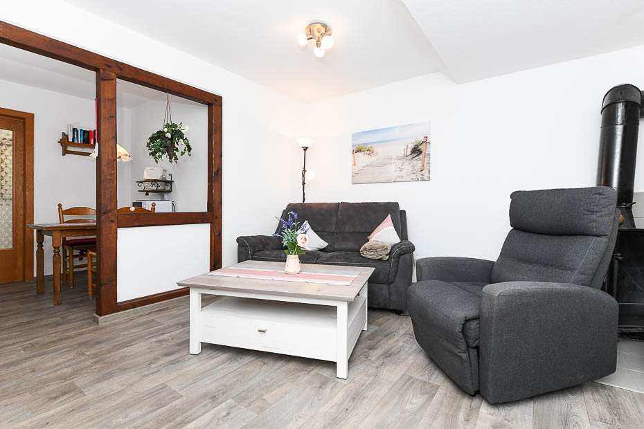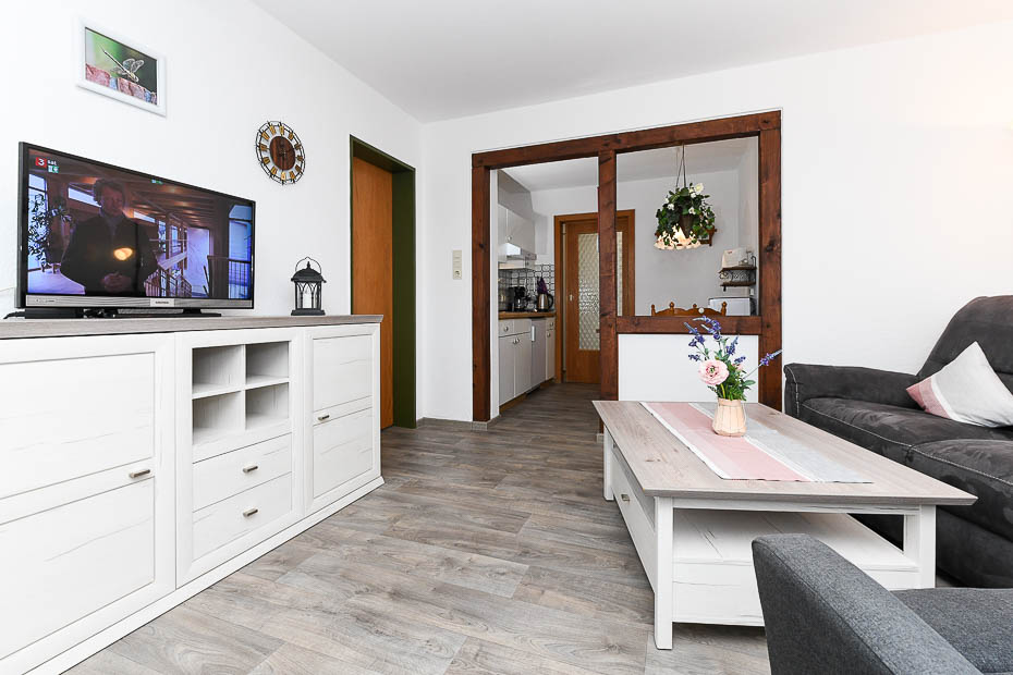 - Wohnraum mit separatem Küchenteil bei offener Raumgestaltung