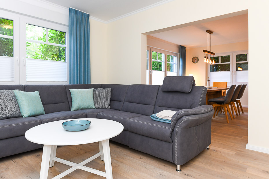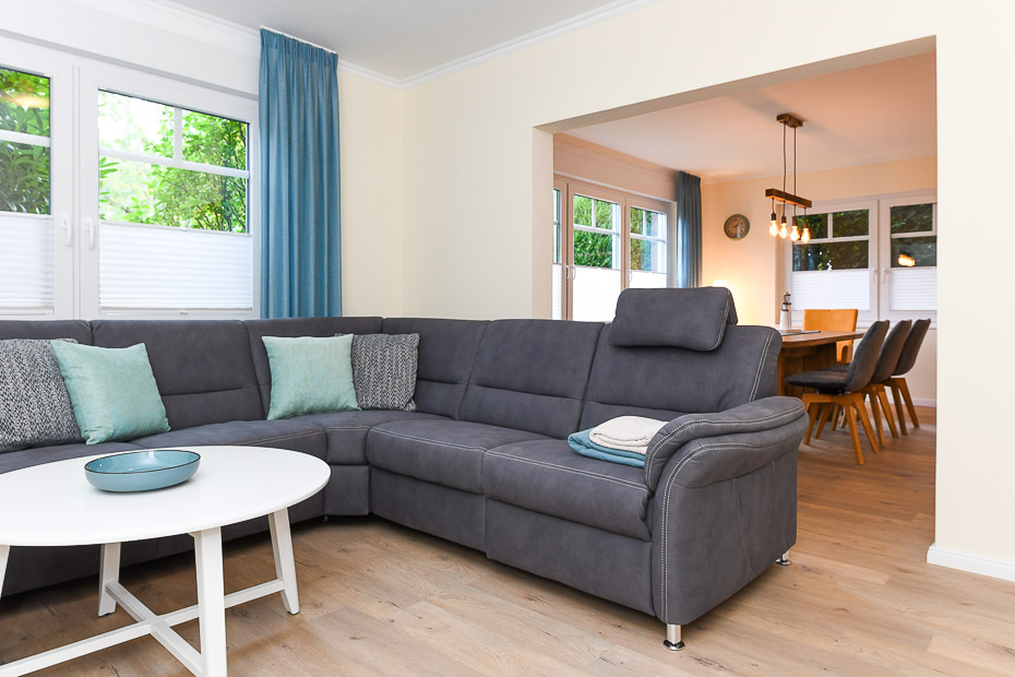 - Wohnzimmer mit großer räumlich abgeteilter Küche