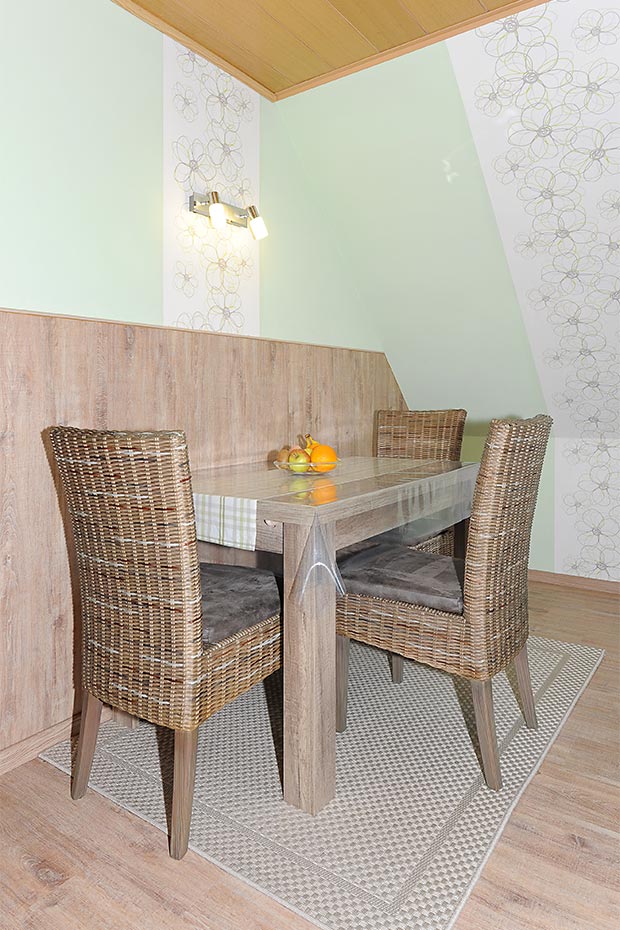 Die Ferienwohnung 3 befindet sich im Obergeschoss und verfügt über einen separaten Eingang, ein geräumiges Bad mit Dusche und WC, eine moderne Kochniesche, 2 große Schlafzimmer eins mit Kinderbett, Wohn-/Ess-Zimmer mit Zugang zum großen sonnigen Balkon. Für Ihre Ausflüge steht Ihnen kostenfrei ein Bollerwagen zur Verfügung.