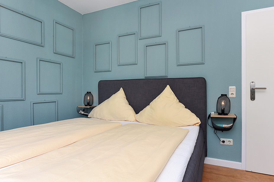 - Verdunkelung: Verdunklungsgardinen in den Schlafräumen